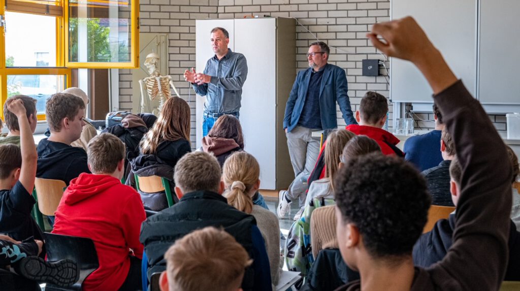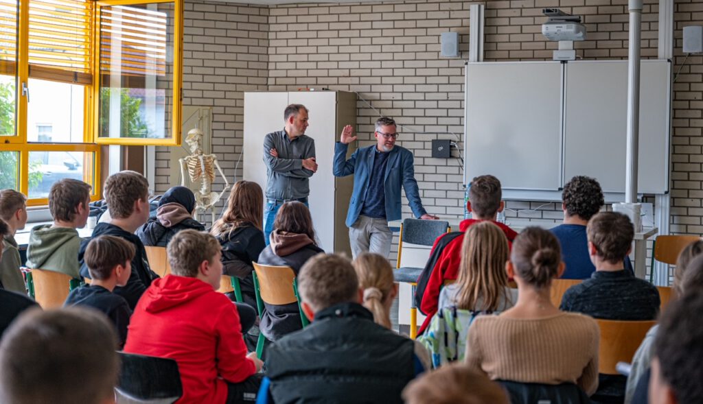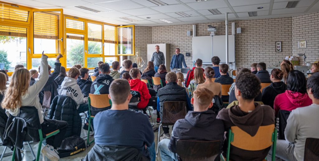 Am diesjährigen landesweiten Schulbesuchstag des Landtags Rheinland-Pfalz im Umfeld des 9. Novembers haben Landtagsabgeordnete rund 150 weiterführende Schulen im ganzen Bundesland besucht, um mit Schülerinnen und Schülern zu diskutieren. Über 8.000 Schülerinnen und Schüler hatten die Möglichkeit, mit den Landtagsabgeordneten ins Gespräch zu kommen. Auch die Klassen 8a und 9a der Realschule plus hatten das Vergnügen, den beiden Landtagsabgeordneten Martin Brandl und Markus Kropfreiter ein paar Löcher in den Bauch zu Fragen. Es war ein sehr angenehmes Gespräch. Die Schüler und Schülerinnen sowie deren Fragen wurden Ernst genommen und ausführlich beantwortet.